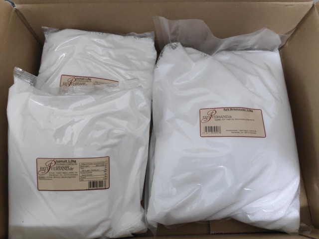 - Xylit und Isomalt jeweils 2 Kg. Bestellen tue ich bei Pati Versand