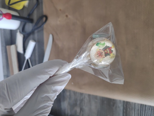 - Danach kann man mit einem Gasbrenner die Oberfläche erneut erhitzen, damit die Bläschen an der Oberfläche verschwinden und man gibt dem Lutscher dadurch sein finish.